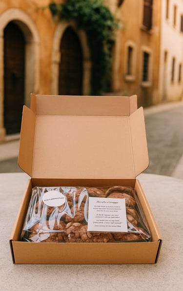 Il nostro biscotto al cioccolato fondente con farina di riso e un tocco di grappa è una creazione pensata per chi cerca emozione, intensità e qualità in ogni dettaglio. Un equilibrio perfetto tra carattere e delicatezza, tra il profumo avvolgente del cacao e la nota alcolica sofisticata della grappa.